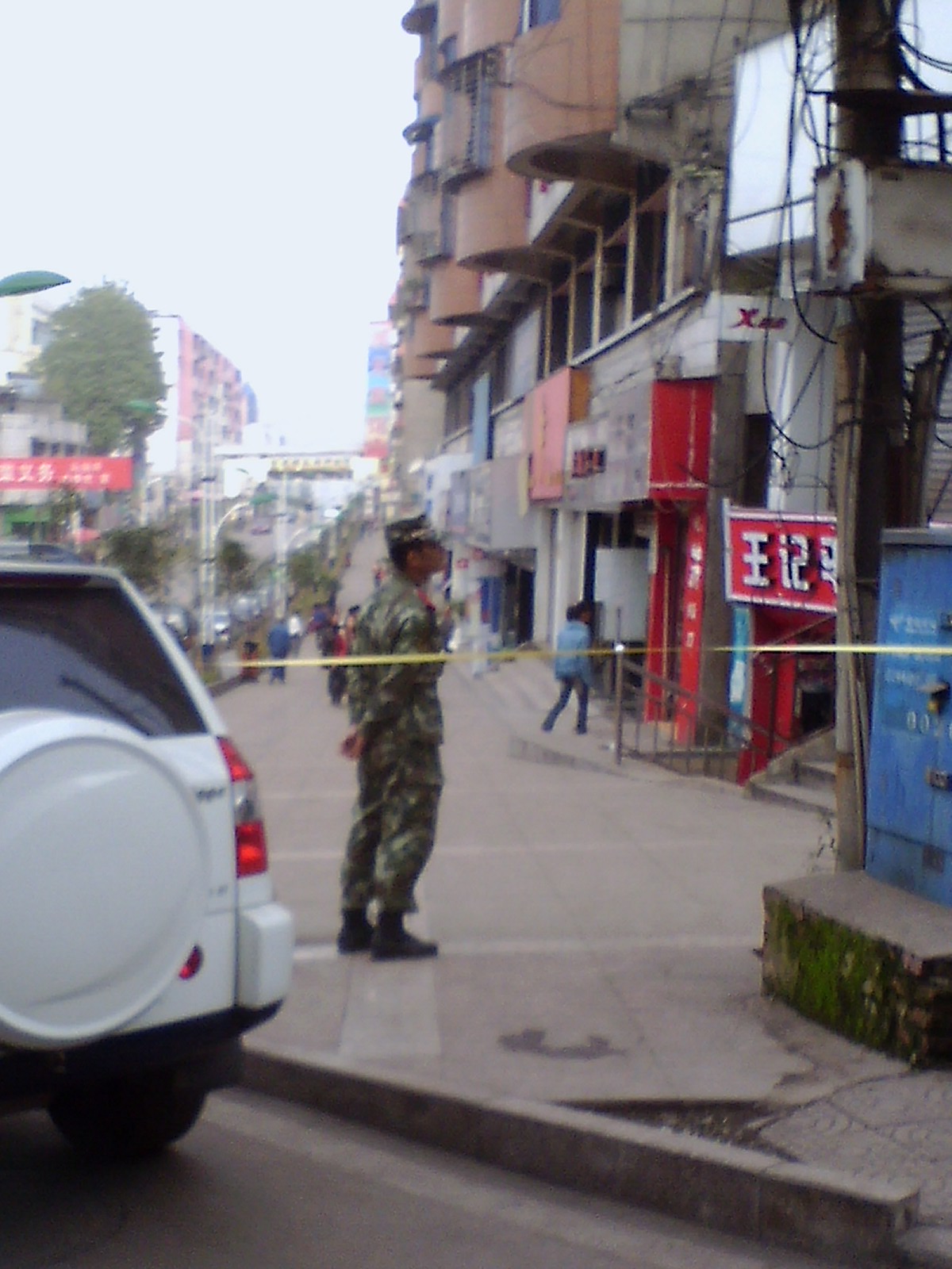 走到大街上后 一片狼藉 满大街都是玻璃碎片 这是距离爆炸地一公里左右的地方