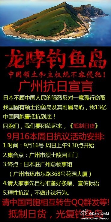 作者: gliathus 时间: 2012-9-13 21:00 标题: 【微博转播】南粤即将反日游行