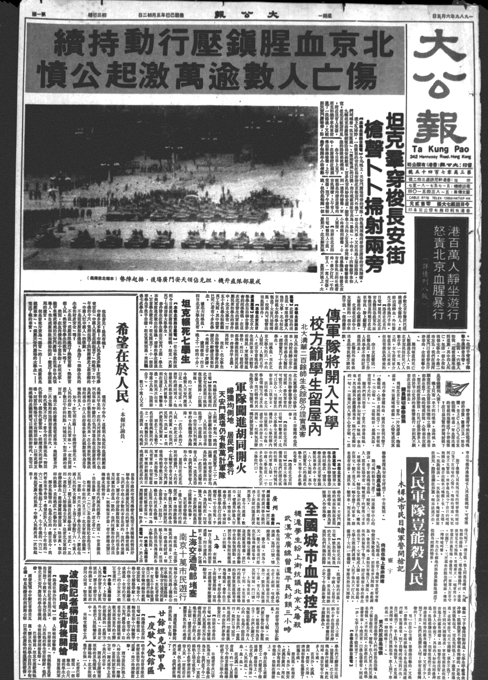 手段,包括動用槍械、出動坦克等等在內。後來發生的大量殺死殺傷無辜平民事