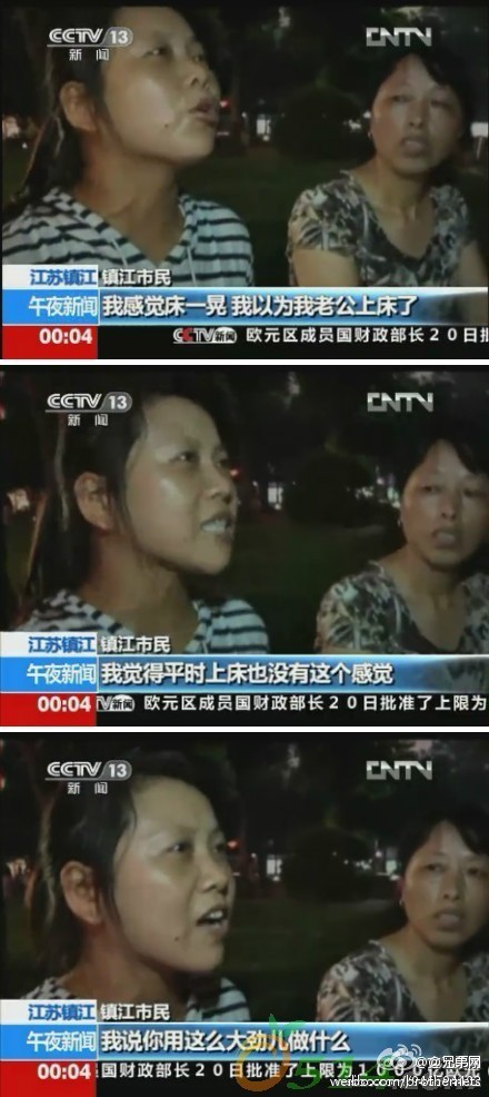 扬州地震的最喜感的采访:我感觉床一晃,我以为我老公上床了...