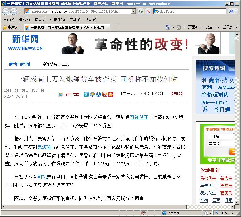 我没有去看原新闻,但这转载的帖子有个明显了漏洞:既然是炮弹,那么每发最轻也得有个5公斤吧,车上装载了12033发炮弹,总计才10几吨,姑且按照15吨计算吧,平均每发炮弹的重量才1.25公斤,也太轻了吧?连弹头的重量都不够,可能吗?