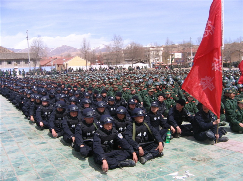 特别是2008年3月16日,以阿坝格尔登寺僧侣为主的藏人民众走上街头进行和平示威时,共产党的武装部队立即把枪口对准了民众,当时有23名藏人被军警射杀。格尔登寺被军警的严密包围下,与外界失去了联系,寺院变成了监狱。从那时起,中共在阿坝县增建了5所兵营。近期,根据美国纽约人权研究组织的报导,中共对阿坝地区的维稳费用已达整个四川省的两倍多。目前,有5万多名中共军警驻扎阿坝州。