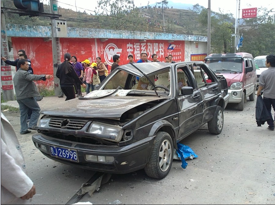 也被震破了,知道这事以后,我就称着中午放学时间去马场坪看了,听当地的人说,