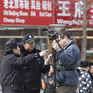 中国警察要求在北京王府井大街附近采访的美联社摄影师离开