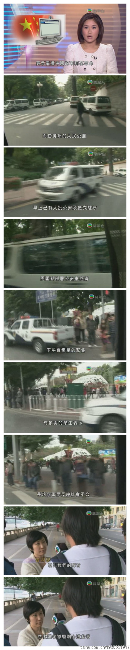 昨日,內地網民發起下午在13個城市集會,舉行中國「茉莉花革命」,在北京、上海、天津及廣州等13個城市的市中心廣場集會。在北京,集合地點王府井麥當勞門外,聚集了過百人,但未有人高叫口號或舉標語,在場戒備的公安,呼籲聚集人士離開。