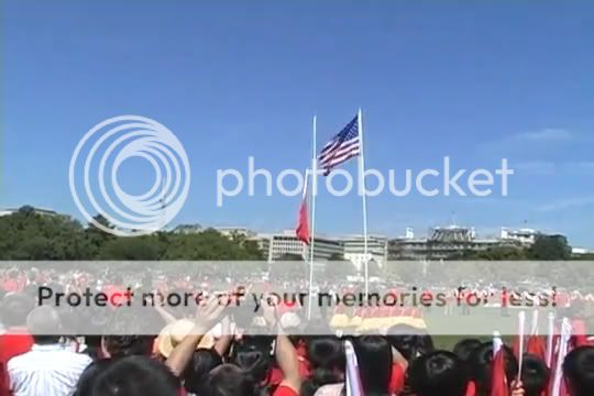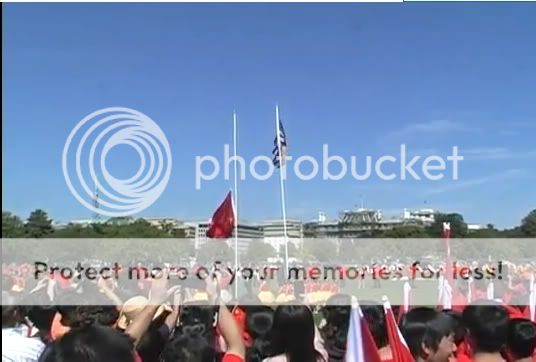 第三次升旗的过程中旗子一直被缠到绳子上,等到旗子张开并快升到顶部时,卡在中途,怎么也上不去,或许本来想滥竽充数,后来还是再次取下。第四次才上去。