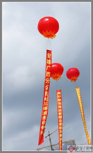 《新快报》报道,红色的气拱门、20多个升空大氢气球,气球下挂着10多米长的条幅,条幅上是众多知名企业和个人贺词……如此阵势,并不是什么活动