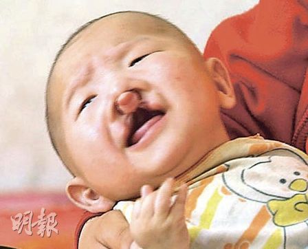 這100日大嬰兒因患有先天雙軌唇齶裂,不能吃奶,整天不停哭叫。