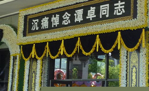谭卓亲友在追悼会上哭得死去活来。据目击者表示,在当日追悼会上,至少有数千人前来送葬,他们不但挤满了整个大厅,瞻仰遗体的队伍从头望不到尾。现场肃穆悲凄,到处是悲伤的泪水。而谭卓父母当日鲜少的穿着红色衣服为儿子送行,这个与中国习俗不相称的做法引起不少猜测,认为谭父母的做法有着特别的意思。