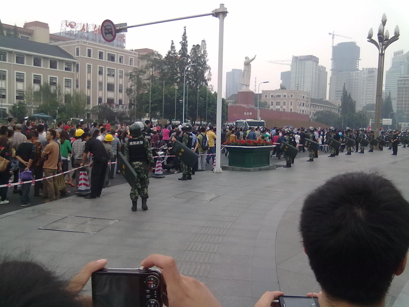 游行队伍人数不少啊,穿制服的就占了30%,打酱油的占了65%,剩下的就是游行的人了。