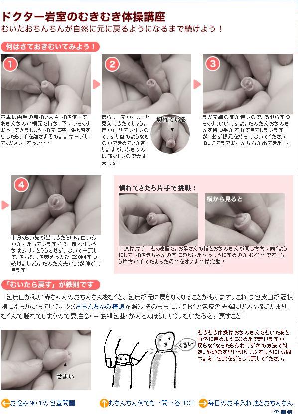日本醫生建議媽媽們最好都給自己的小兒子定期做“ MukiMuki體操”,也就是陰莖體操,以防止包莖,越來越多家長接受,而且不擔心部分專家提出可能構成醫療虐待兒童的呼籲。