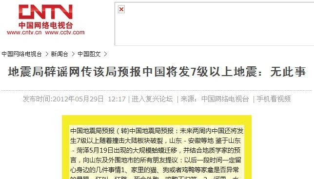 官方發炎:此乃76年唐山大地震的餘震