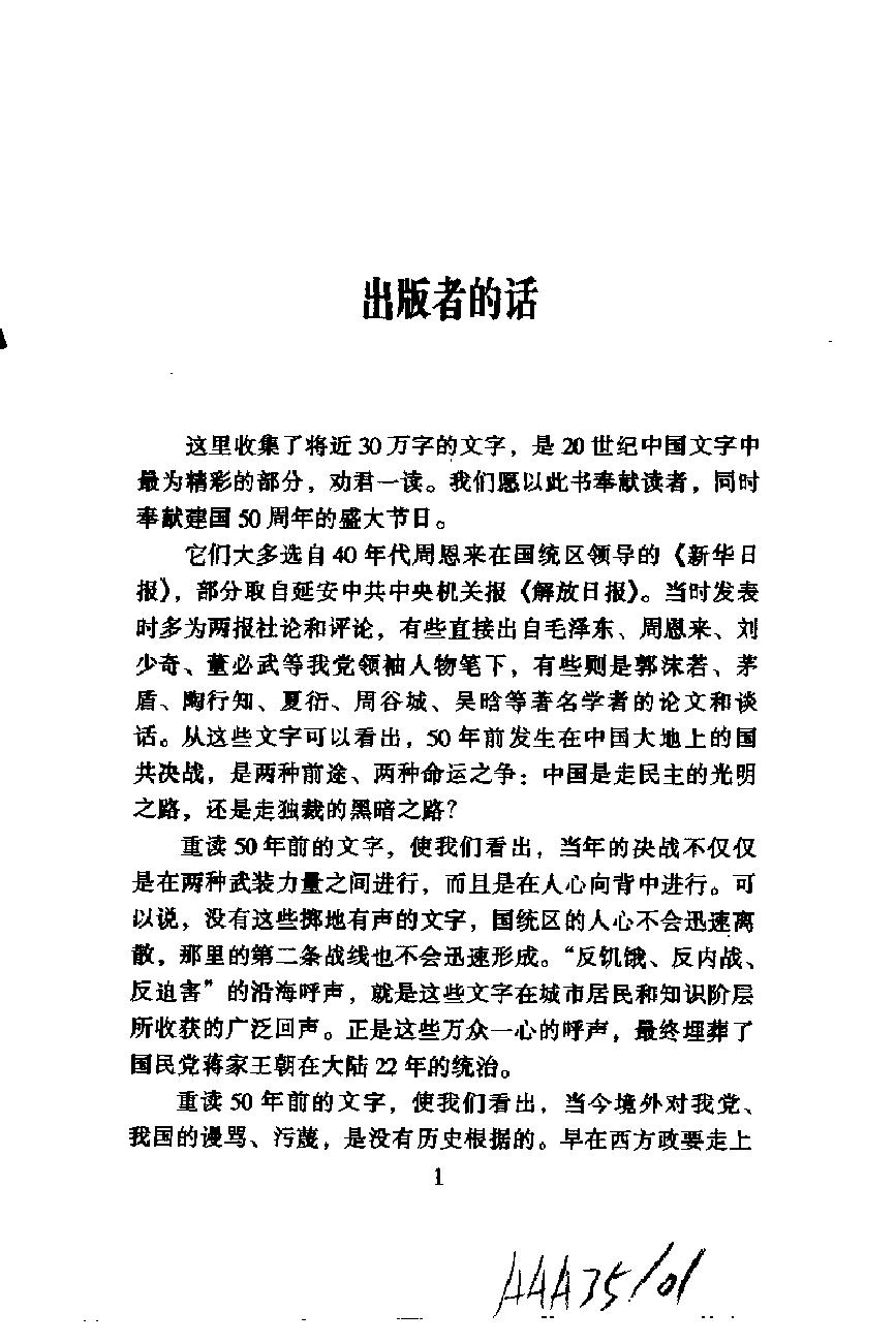 1999年9月出版的《历史的先声──半个世纪前的庄严承诺》(笑蜀编,汕头大学出版社)